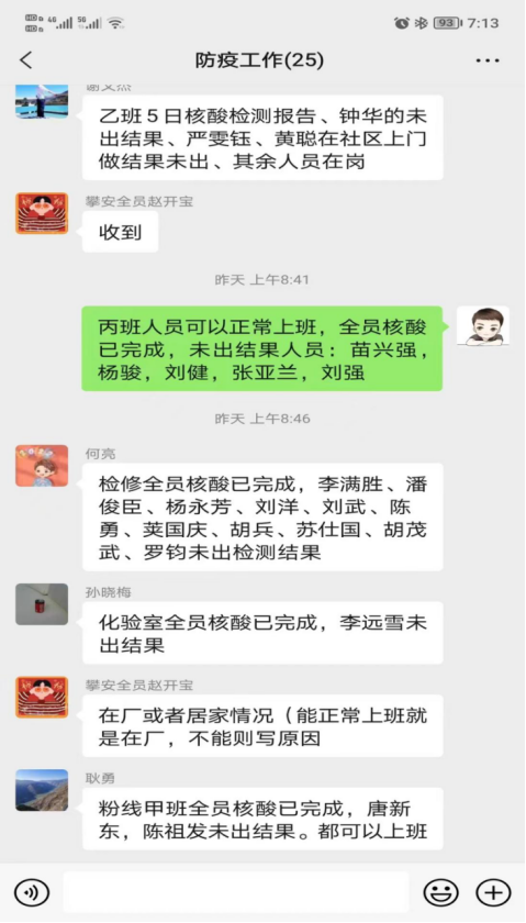 受疫情影響,在人員上攀川藍鼎封控區(qū)無法上班共計17人,15人居住地在封控區(qū),無法回家就近賓館安排住宿。因部分人員無法正常到崗,川藍鼎砂漿暫停生產(chǎn),只留3人駐場,其余人員抽調(diào)脫硫,協(xié)助攀藍鼎保產(chǎn)、防疫工作。因疫情原因通勤問題,員工上下班乘車困難。公司啟用私車公用,由各班私家車接送,保證員工正常到崗,安全回家。